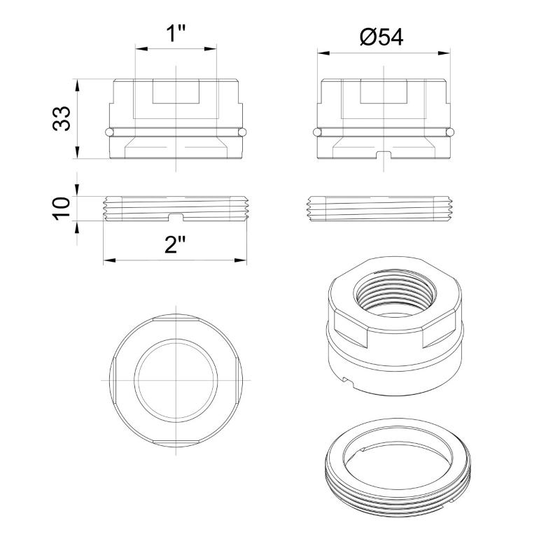 - Резьбовое соединение G 1" для насадки (резьбовое соединение G 2" на индикаторе для соединения давления насадки остается в свободном доступе)