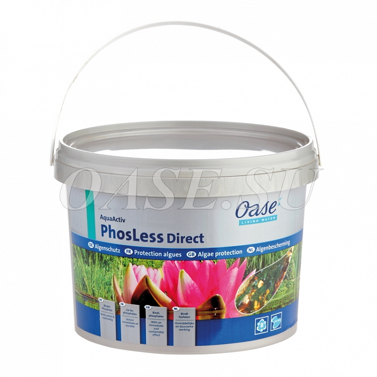 PhosLess Direct защищает воду от водорослей, физически удаляя фосфаты,что способствует естественному ограничению роста водорослей. Средство связывает сероводород, вызывающий неприятный запах. PhosLess Direct — эффективное средство для снижения значительно повышенного уровня фосфатов и подготовки воды сразу после обработки от водорослей. В результате применения средства содержание фосфатов опускается до предела 0,035 мг/л, необходимого для роста водорослей, и даже ниже. В идеале средство следует использовать ранней весной, чтобы предотвратить цветение водорослей во время теплого сезона.