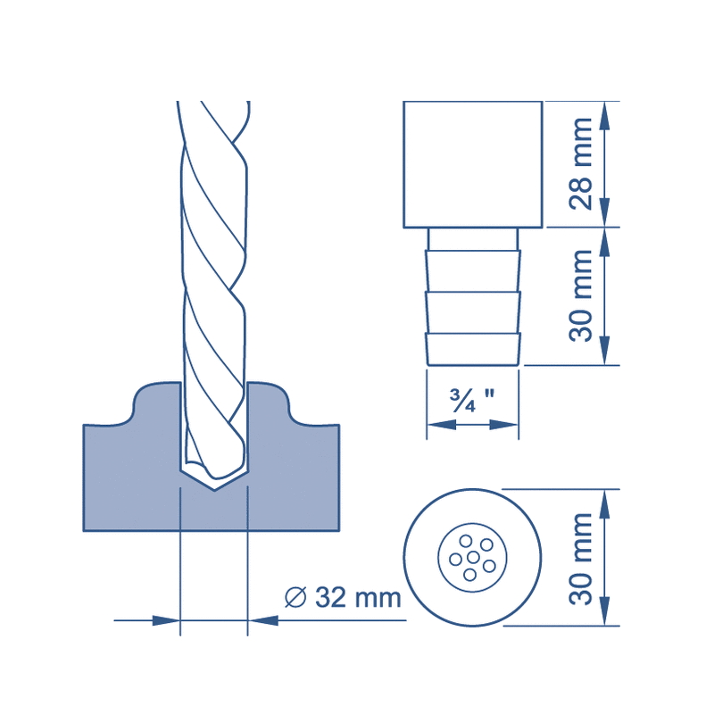 Соединение со шлангом, мм - дюйм