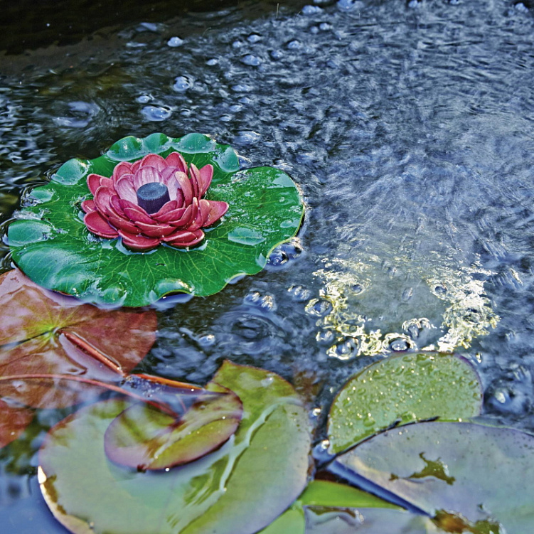 Погружной аэратор с подсветкой для насыщения воды кислородом, воздухозаборник данного аэратора задекорирован под плавающую лилию.