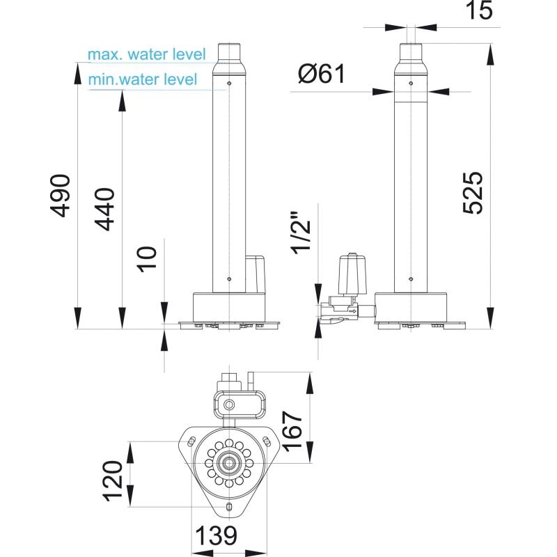 - Имеет электромагнитный клапан IP 68 для погружной установки