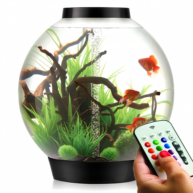 - Сферический аквариум со светодиодной подсветкой белого цвета