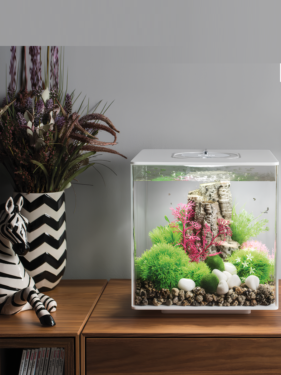 Серия biOrb CUBE это классические аквариумы квадратной формы с цветной светодиодной подсветкой (16 цветов) и пультом дистанционного управления.