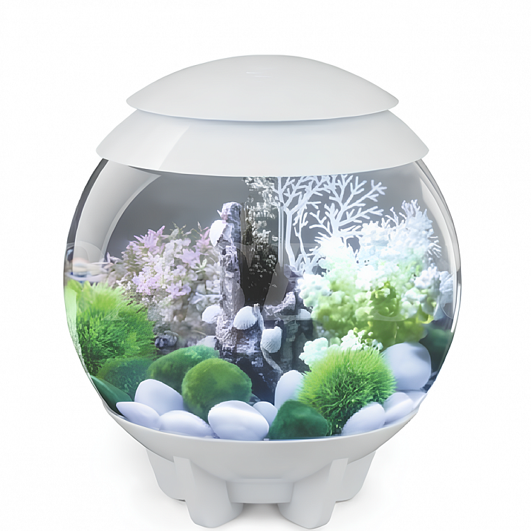 Серия biOrb HALO MCR это визуально бесшовные аквариумы сферической формы с цветной светодиодной подсветкой (16 цветов) и пультом дистанционного управления.