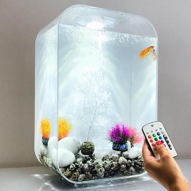 - Прямоугольный аквариум со сглаженными углами и со светодиодной цвето-меняющейся подсветкой