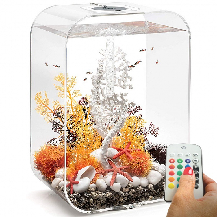 Серия biOrb LIFE MCR это аквариумы с великолепным дизайном и встроенной цветной светодиодной подсветкой (16 цветов) и пультом дистанционного управления.