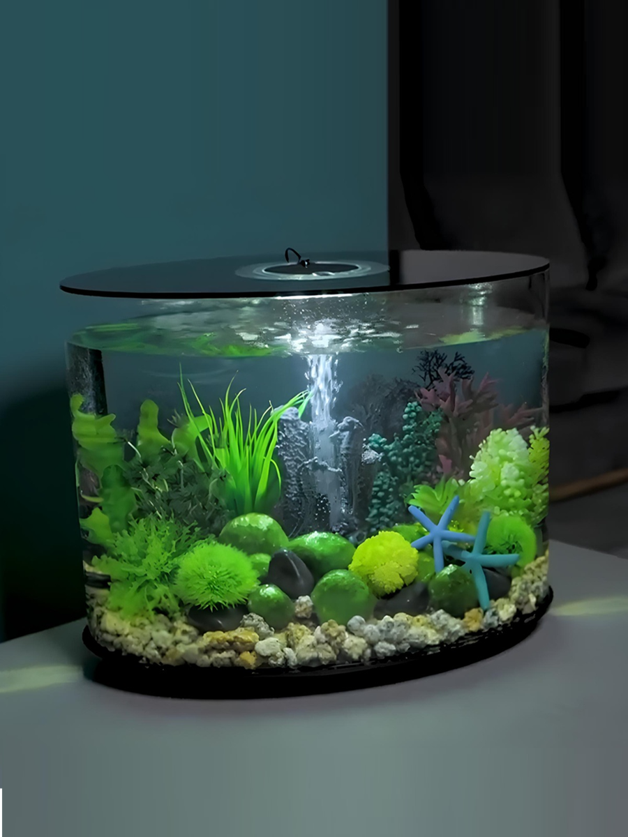 - Овальный аквариум со светодиодной цвето-меняющейся подсветкой