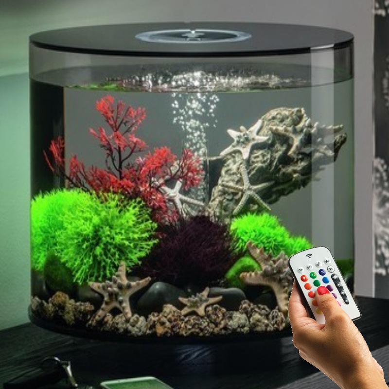 - Круглый аквариум со светодиодной цвето-меняющейся подсветкой