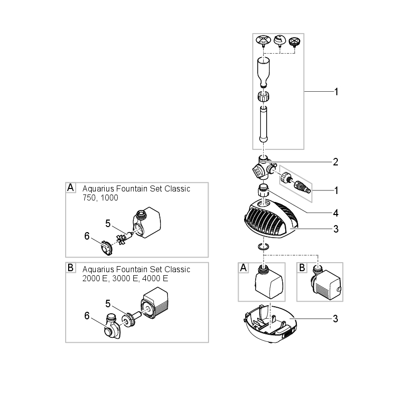 В комплект поставки включены 3 фонтанные насадки для создания различных водных образов.