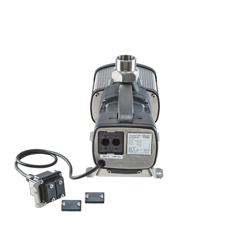 Varionaut 240 24 В / DMX / 02 - это самый мощный насос, совместимый с DMX / RDM, с технологией 24 В постоянного тока. Этот высокодинамичный, индивидуально регулируемый насос создает характеристики воды с точно воспроизводимой высотой фонтана. Максимальная высота фонтана 4,8 м достигается всего за 1 секунду с помощью Comet 15 - 15.