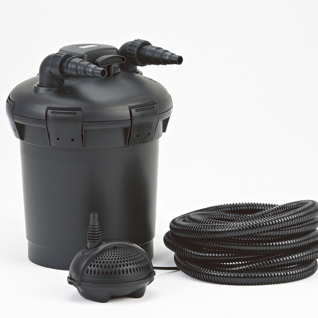 Полный комплект напорной системы фильтрации, подходит для использования в прудах с рыбой и без рыбы.