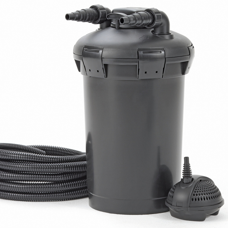 Полный комплект напорной системы фильтрации, подходит для использования в прудах с рыбой и без рыбы.
