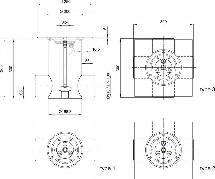 - Присоединение к камере DA110/DN110 (по запросу 2,3 или 4 шт.)