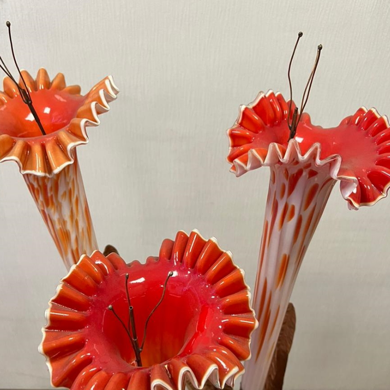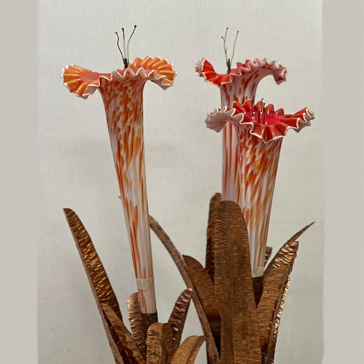 Фонтан "Самандер" из грациозного выдувного стекла накаливания, каждый размером 90 см , установленный на стебле из меди.