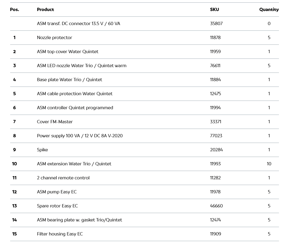 - В комплекте: 5 насосов / насадок, внешний пульт управления, трансформатор и кабель.