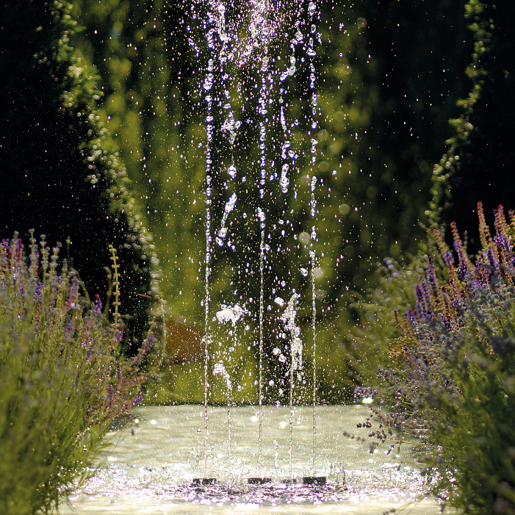 - Высококачественный водный объект, состоящий из пяти меняющихся фонтанов и светодиодной подсветки.