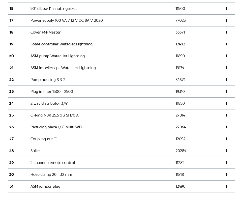 - В комплекте: установка из 2-х Water Jet Lightning, насос, внешний пульт управления, трансформатор и кабель.