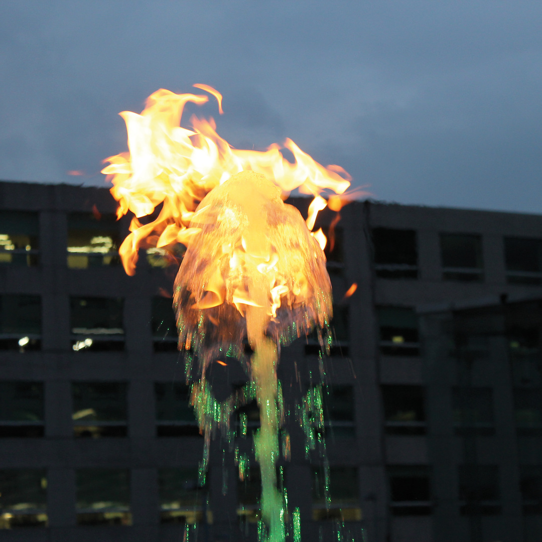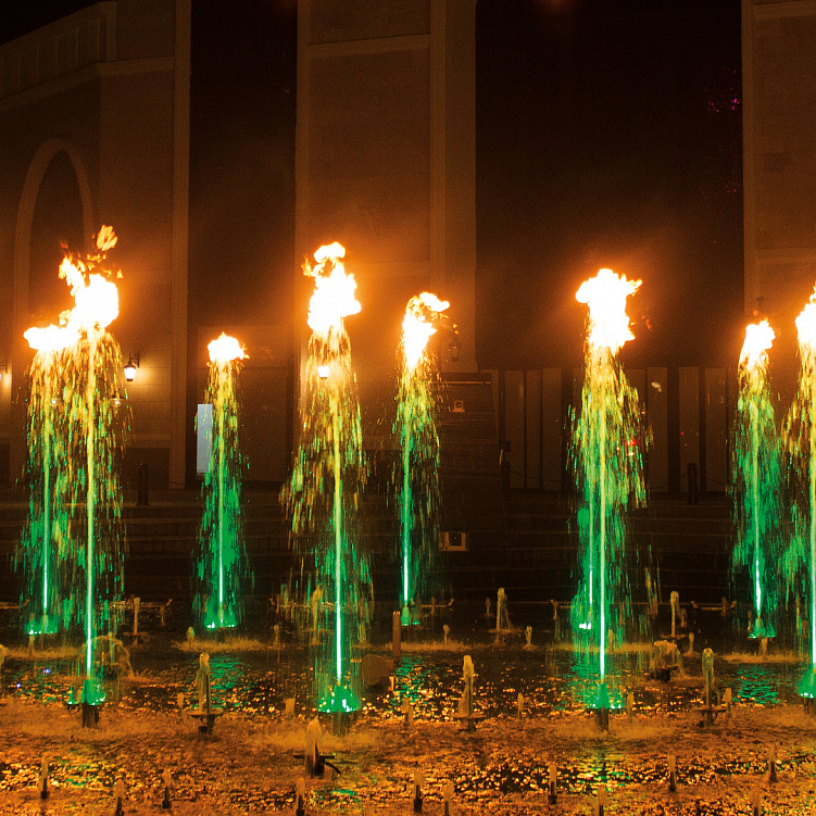 C помощью этой системы появляется возможность сочетать в фонтане эффекты воды и огненного пламени.