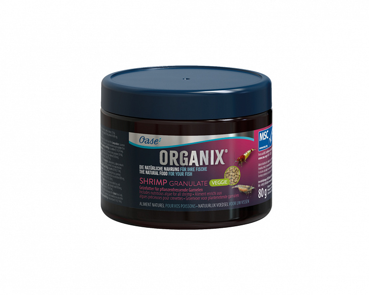 Полноценный корм для креветок: кормите 1-2 раза в день. Сырой белок 38%; сырой жир 14%; сырая клетчатка 2%; сырая зола 11%. Состав: цельный лосось, цельные креветки (26 %), пшеничная мука, зародыши пшеницы, цельная сельдь, свежие ламинарии, пшеничная клейковина. Пищевые добавки (на 1000 г): Витамин А (Е 672) 14.000 т. е. витамин С в виде аскорбилмонофосфата 800 мг, Витамин Е 680 мг, никотиновая кислота 100 мг, инозит 100 мг, Витамин В2 в виде рибофлавина 20 мг, Витамин В12 50 мкг. Сенсорные добавки (на 1000 г): астаксантин (E 161j) 15 мг.