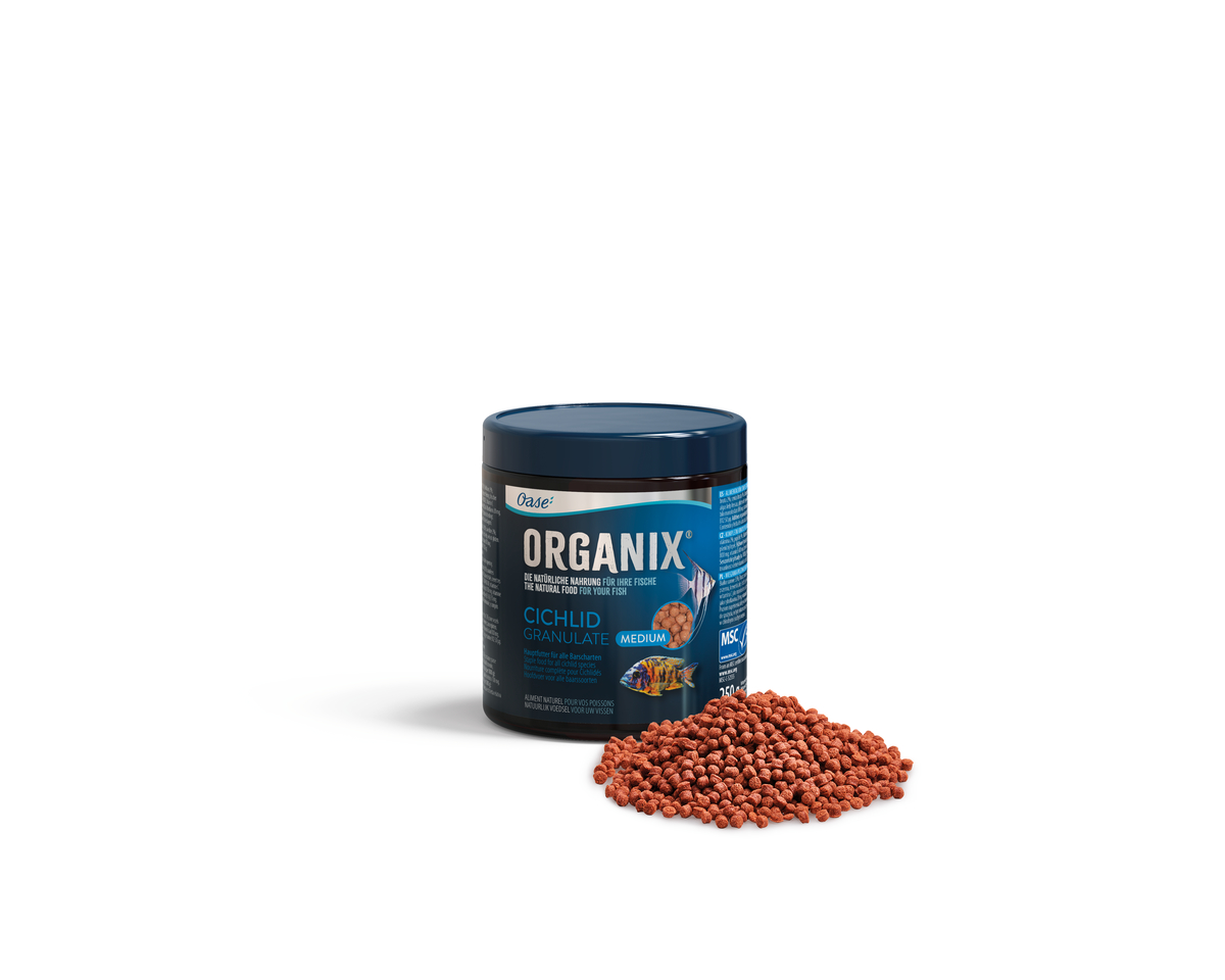 Полноценный корм для декоративных рыб: кормить 1-2 раза в день. Сырой белок 35%; сырой жир 12%; сырая клетчатка 2%; сырая зола 9%. Состав: цельный лосось, зародыши пшеницы, пшеничная мука, цельные креветки, цельная сельдь, свежие ламинарии, пшеничная клейковина. Пищевые добавки (на 1000 г): Витамин А (Е 672) 14.000 т. е. витамин С в виде аскорбилмонофосфата 800 мг, Витамин Е 680 мг, никотиновая кислота 100 мг, инозит 100 мг, Витамин В2 в виде рибофлавина 20 мг, Витамин В12 50 мкг. Сенсорные добавки (на 1000 г): астаксантин (E 161j) 15 мг.