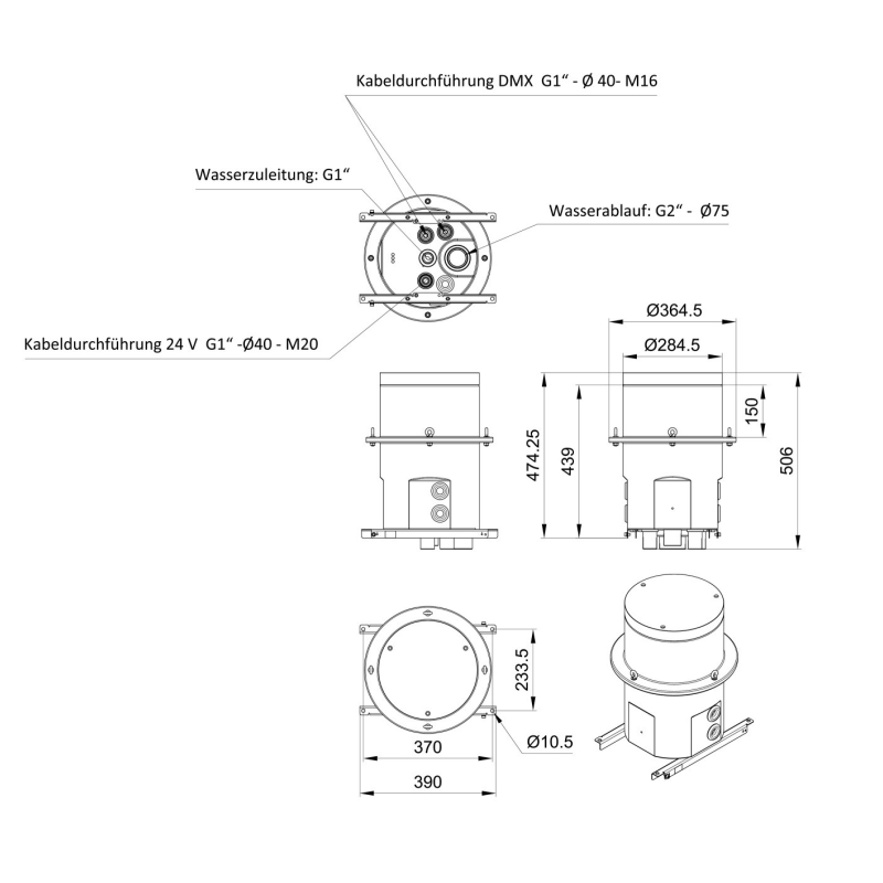 - Монтажная крышка служит уровнем для высоты поверхности фонтана и защищает подсоединенные трубы от загрязнения во время монтажа