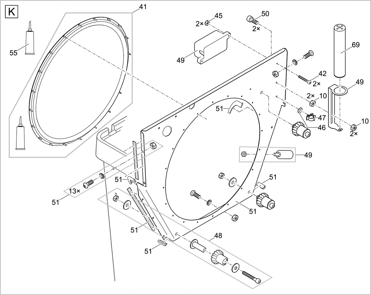 - Индивидуально съемные фильтрующие элементы (инструменты не требуются) и функция свободного хода для легкого доступа к барабану
