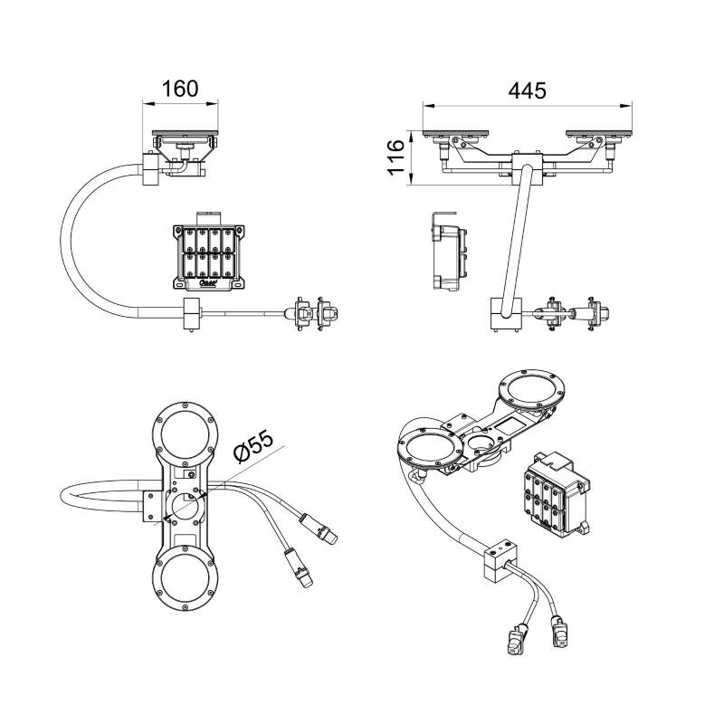 - Центральный зажим с поперечным сечением отверстия 55 мм