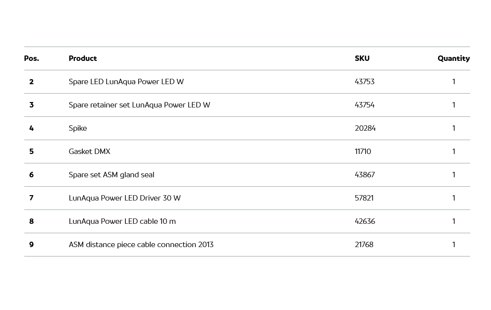 - Простое расширение до 4 светильников, по отдельности доступны прожекторы LunAqua Power LED W