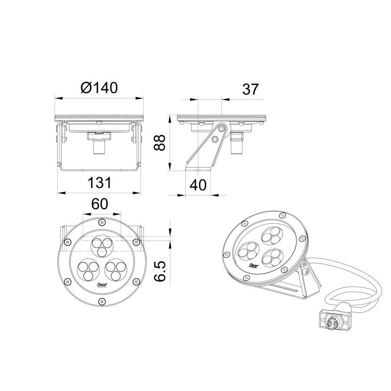 - DMX/RDM-управляемый с подводным выключателем 24 В постоянного тока (вкл / выкл)