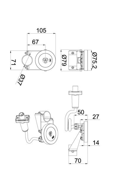 - Размеры: (Ø x H) 75,2 x 105 мм (с кронштейном)