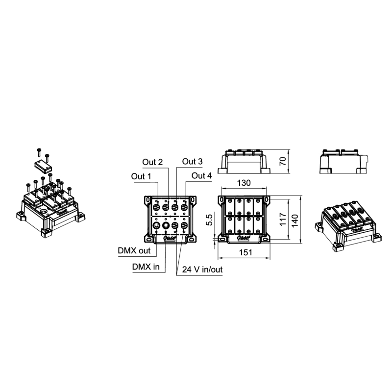 - Вход: вход / выход 24 В постоянного тока; вход / выход DMX