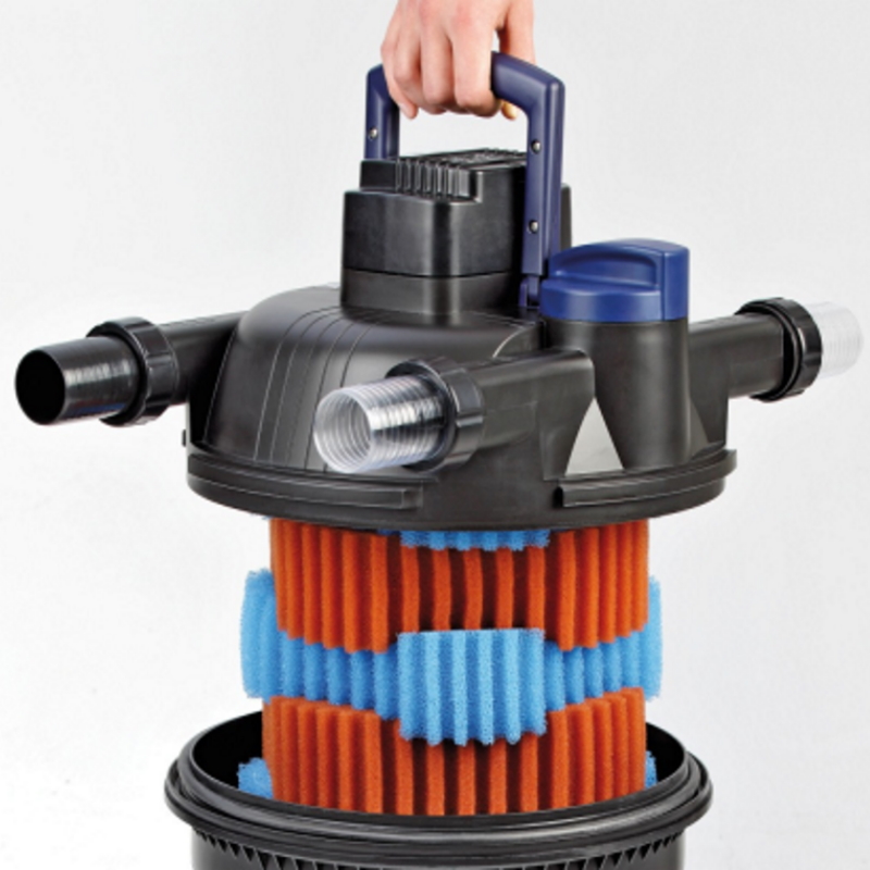 Напорный фильтр сочетающий в себе механическую и биологическую очистку, а также эффективную УФ лампу, с запатентованной и очень удобной технологией очистки самого фильтра.