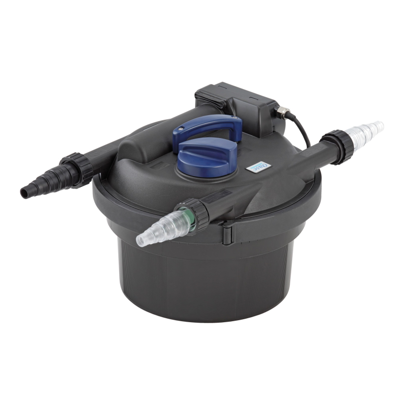 Напорный фильтр сочетающий в себе механическую и биологическую очистку, а также эффективную УФ лампу, с запатентованной и очень удобной технологией очистки самого фильтра.