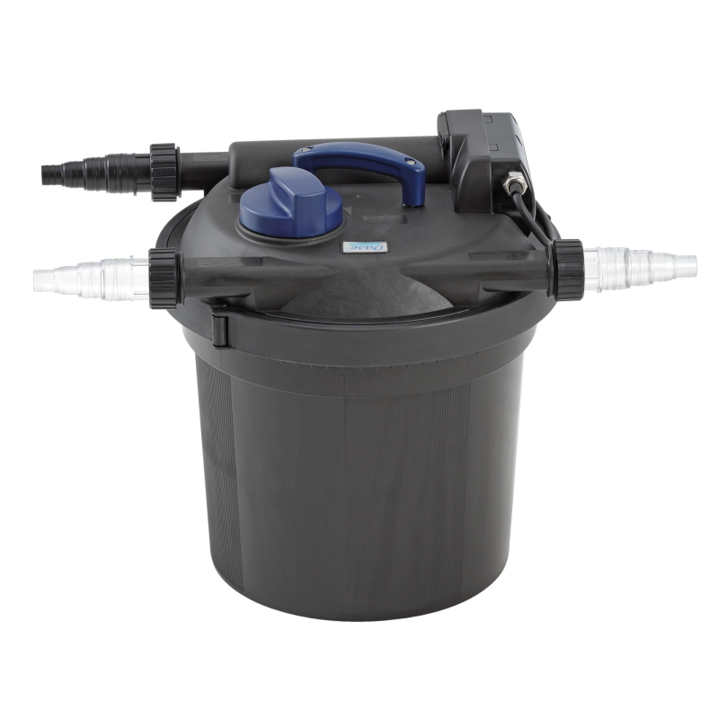 Напорный фильтр сочетающий в себе механическую и биологическую очистку, а также эффективную УФ лампу, с запатентованной и очень удобной технологией очистки самого фильтра.