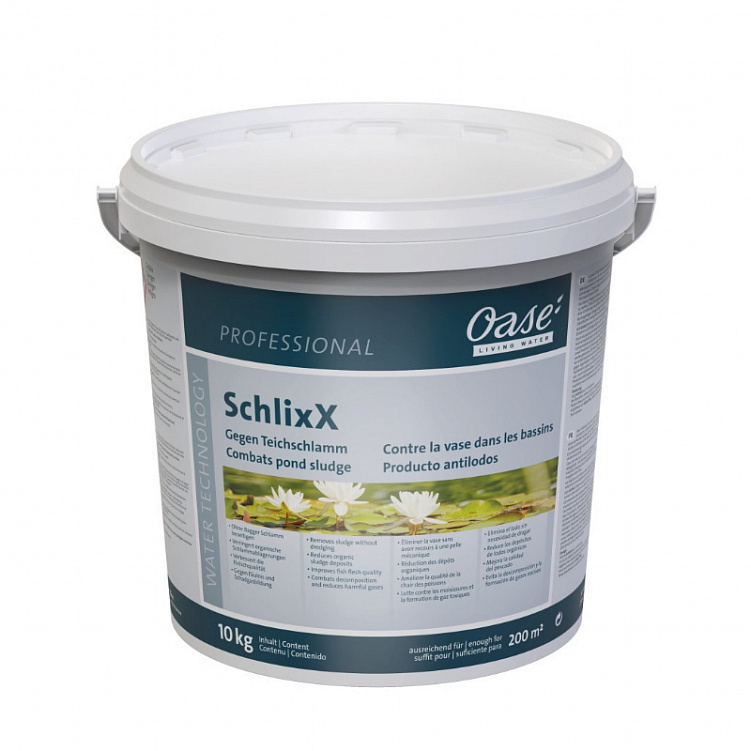 - SchlixX борется исключительно с органическим осадком. Другими словами: осадок, такой как песок, который попадает в воду через притоки, не удаляется SchlixX.