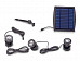 - Набор светильников состоит из трех небольших светодиодных прожекторов и солнечной панели с литий-ионной батареей и колышком в земле.