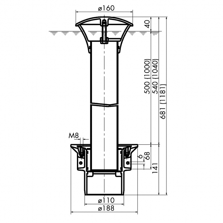 Универсальная арматура перелива Overflow/drain armature 100/1000 T