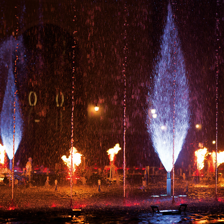 Это феерическая насадка , которая преобразуется и создает в динамике пять водных картин .