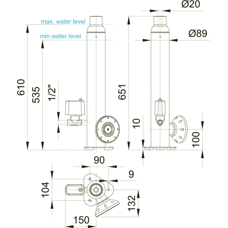 - Имеет электромагнитный клапан IP 68 для погружной установки