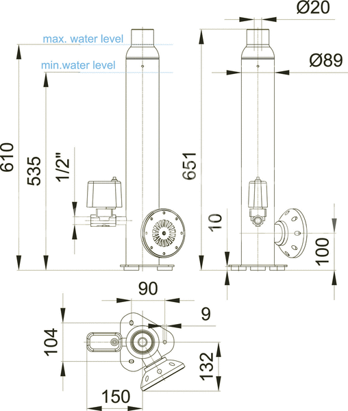 - Имеет электромагнитный клапан IP 68 для погружной установки